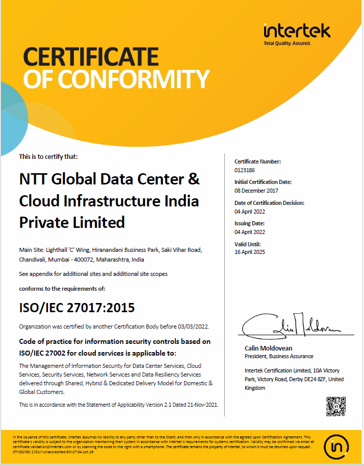 NTT Global Data Center & Cloud Infrastructure India Private Limited -ISO 27017-Main Certificate Icewarp Team March 29, 2025 10:39 Updated ICEWARP TECHNOLOGIES PVT LTD 27017 - 4381 (1).pdf 2 MB Download Comments 0 comments Please sign in to leave a comment.