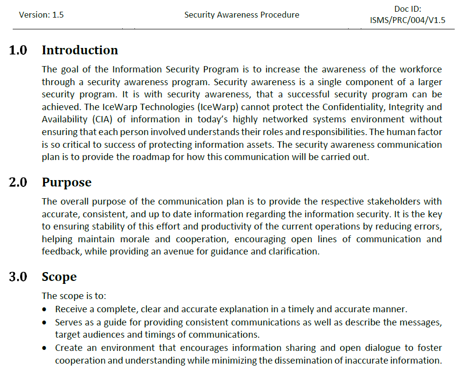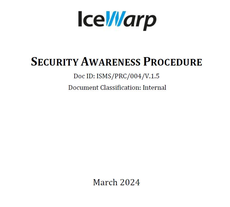 Security Awarness Procedure Icewarp Team April 03, 2025 12:08 Updated Comments 0 comments Please sign in to leave a comment.