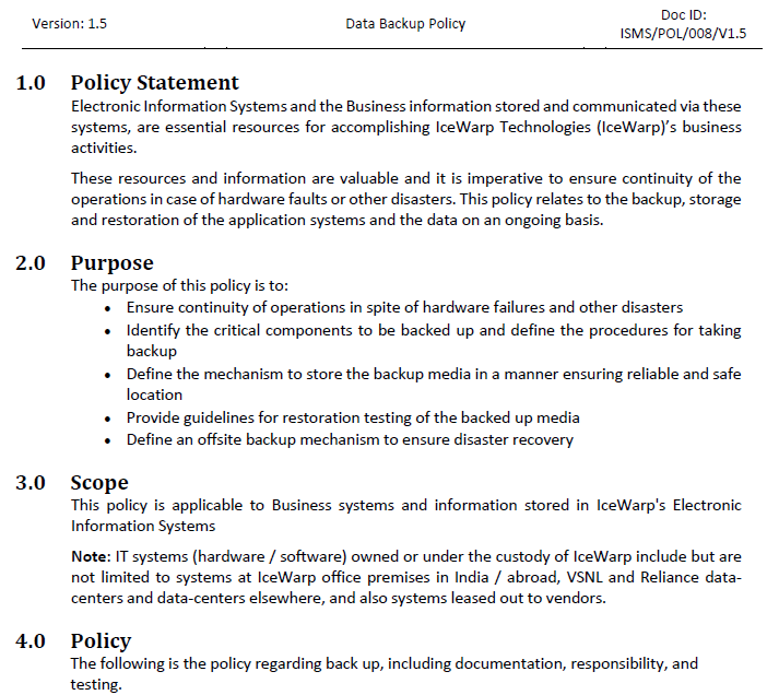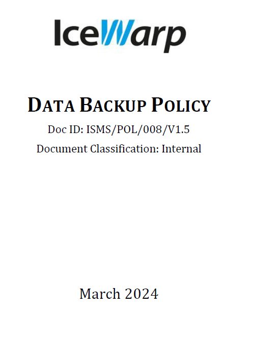 Data Backup Policy Icewarp Team April 03, 2025 12:00 Updated Comments 0 comments Please sign in to leave a comment.