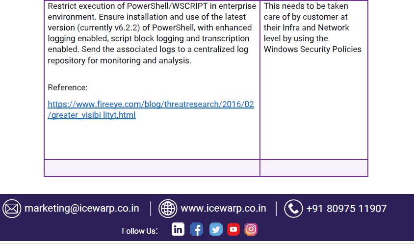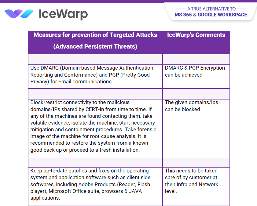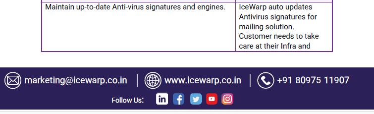 IceWarp's RBI Guidelines - CertIn Advisory Icewarp Team April 07, 2025 12:52 Updated Comments 0 comments Please sign in to leave a comment.